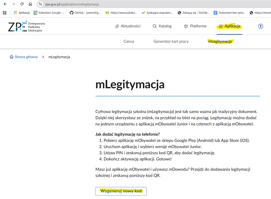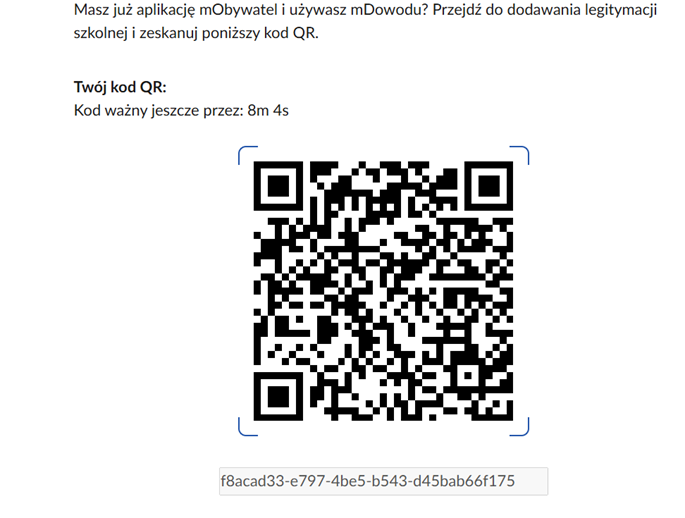 W sekcji mLegitymacje kliknij przycisk „Wygeneruj kod QR”.